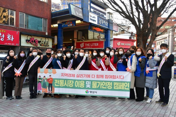양산시는 지난 16일 나동연 양산시장, 남부시장 번영회 및 상가 상인회, 소비자단체, 물가모니터 요원, 관계 공무원 등 30여 명이 참석한 가운데 설 명절을 앞두고 남부시장에서 전통시장 이용 및 물가안정 캠페인을 펼쳤다.