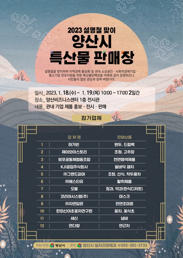 양산시, 2023년 설맞이 특산물 판매장 운영