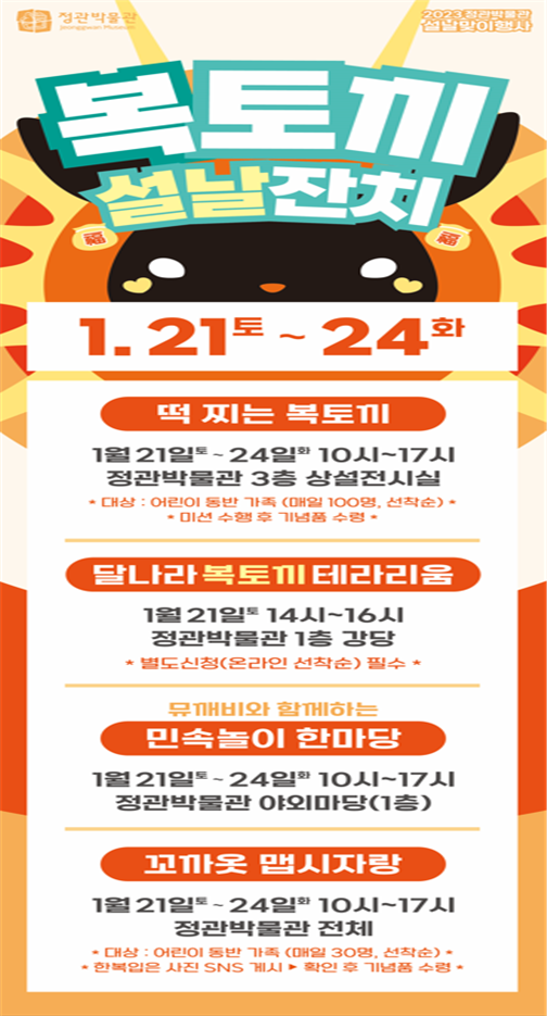 기본 크게 더크게 인쇄 스크랩 목록보기정관박물관, 1.21.~1.24. 10시~17시 4일간, 설맞이 다양한 문화행사 마련
