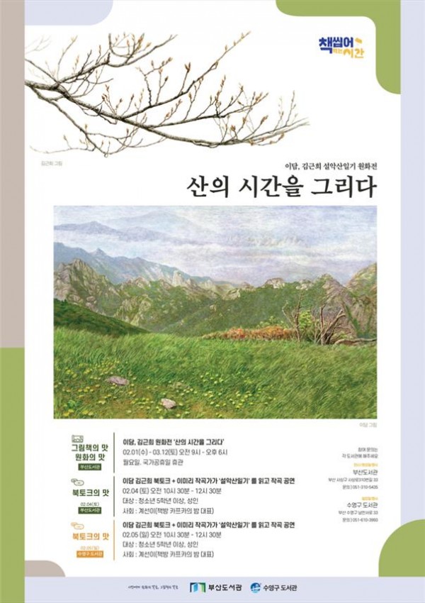 부산도서관은 오늘(1일)부터 오는 3월 12일까지 비주얼 에세이 「설악산 일기」의 작가 <이담․김근희 원화전>을 진행한다고 밝혔다.